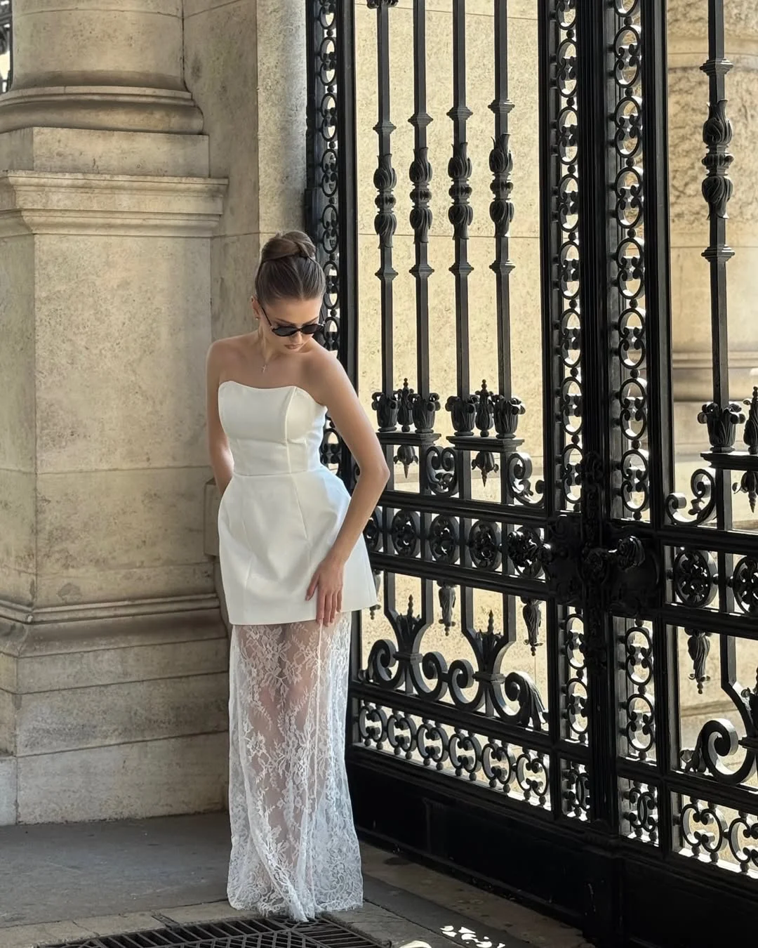 Le haut en tube ajusté épouse le buste avec délicatesse et apporte un effet sculptant irrésistible. Sa coupe sans manches met en valeur les épaules et le port de tête, tandis que la jupe longue à coupe sirène allonge la silhouette tout en suivant les mouvements avec fluidité.