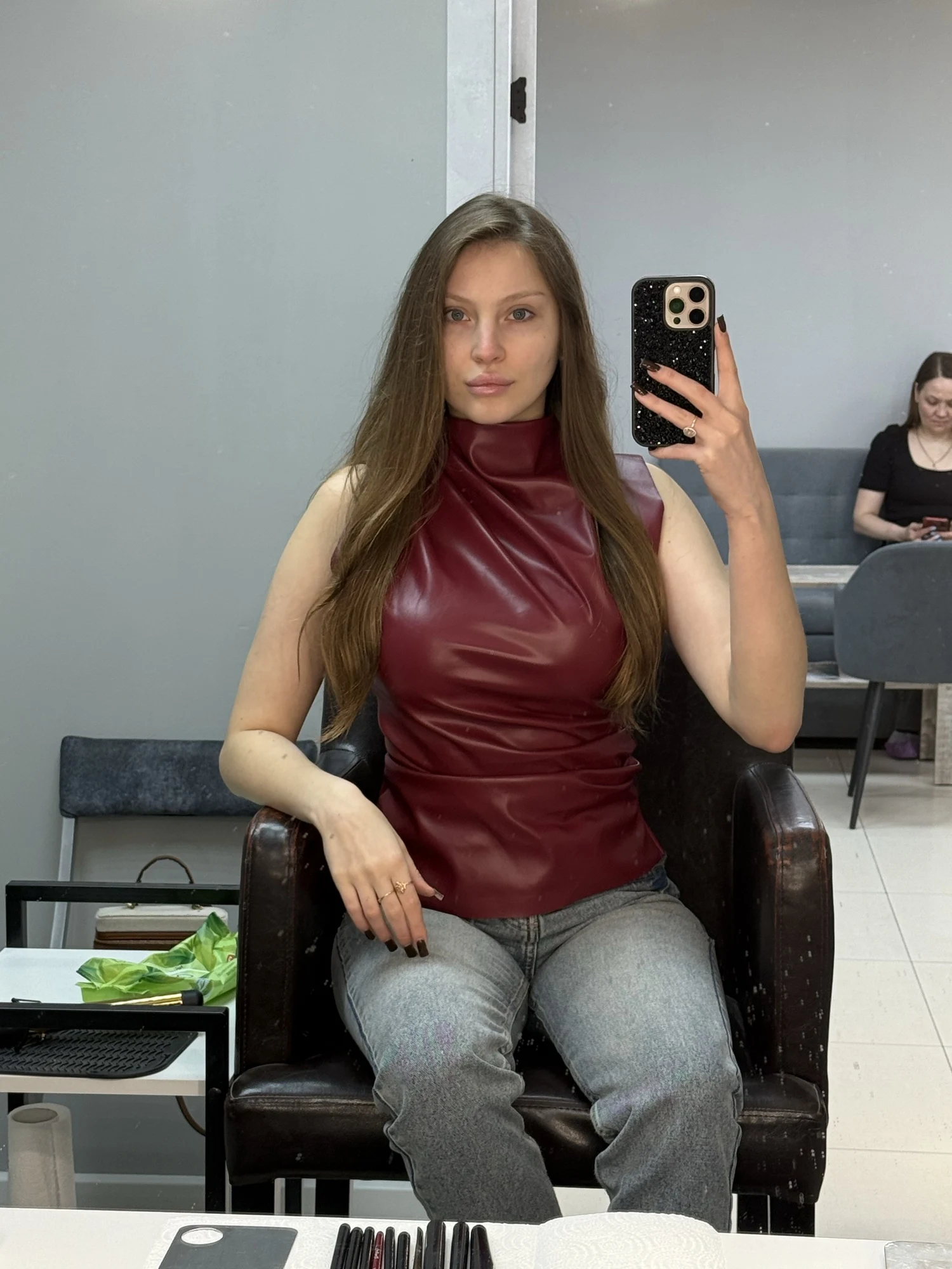 Affiche une allure audacieuse et structurée avec le haut Soraya, un débardeur sans manches en similicuir PU qui combine parfaitement sensualité minimaliste et esprit street fashion chic. Son col montant mi-haut renforce son caractère moderne et affirmé.